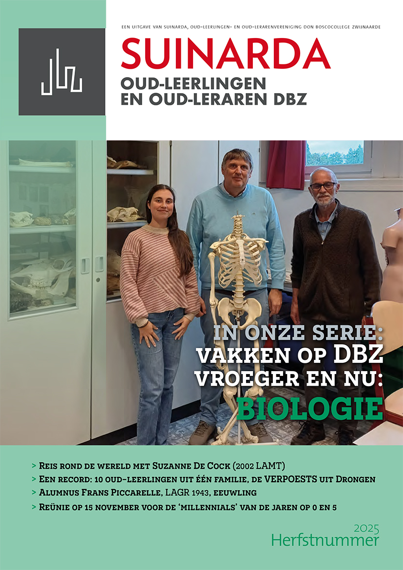 Alle betalende leden van Suinarda ontvangen drie maal per jaar, in de winter, in de lente en in de herfst, een dito genaamd nummer van ons tijdschrift. Dat sluit aan bij onze andere media (website, nieuwsbrief, facebook), maar graaft dieper met langere interviews, bio’s en actualia. Het wil tevens een mooi, een esthetisch verantwoord collector’s item zijn. Uiteindelijk zou je hier bij inbundeling de zin moeten vinden van de levens van de oud-leerlingen van DBZ.