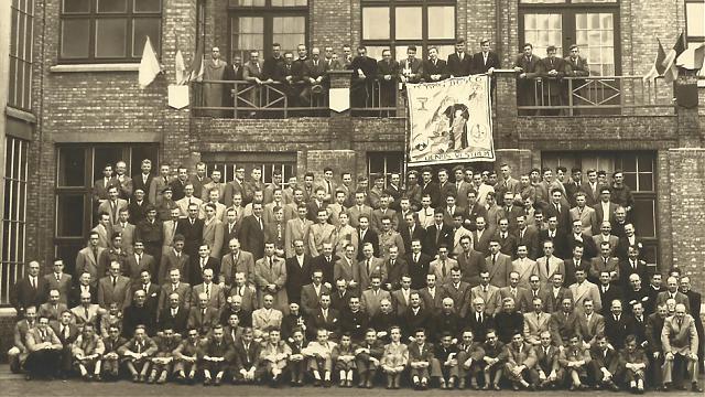 Op deze foto, genomen in Don Bosco Sint Denijs, is de ganse schoolbevolking te zien. Wat we niet weten is het exacte jaartal (1950?), de namen van leerkrachten of leerlingen en we weten zelfs niet of de leerlingen van de humaniora (de LG) erbij mochten. Alle hulp is welkom .